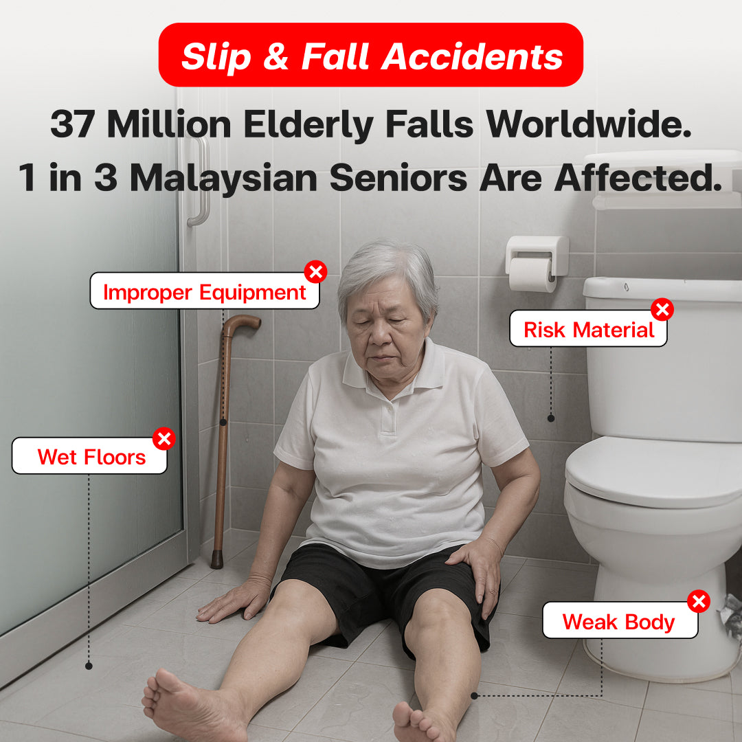 Features a robust anti-slip base that ensures total stability. Reduces the risk of slipping in the bathroom for all ages: from children to the elderly- even on wet floors.