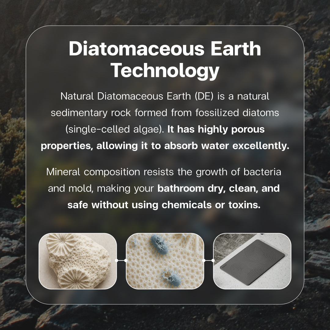 Instant Absorption, Natural Safety. Crafted from fossilized Diatomaceous Earth, this mat absorbs moisture the moment it touches the surface. Paired with a secure anti-slip base, it ensures total stability with every step - keeping your space clean, safe & elegant.
