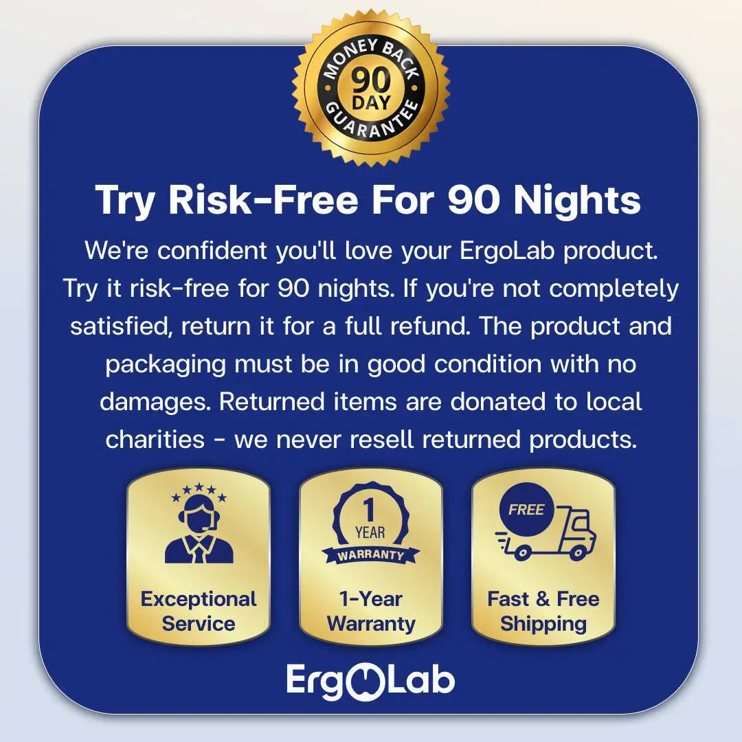 We’re so confident you’ll love the ErgoLab pillow that we offer a risk-free trial and a 90-day guarantee. If you’re not satisfied, send it back for a full refund (we’ll pay shipping).